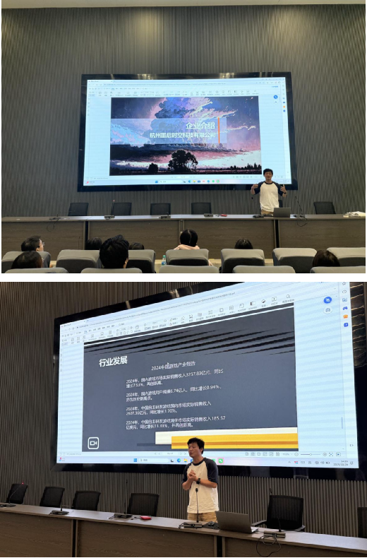 公司代表首先介绍了企业的核心合作伙伴和优质资源,并分享了公司在游戏产业中的行业地位及重大项目案例。随后,主讲人深入分析了中国游戏产业的发展趋势,帮助同学们了解行业前景。在业务介绍环节,公司详细展示了模型、绑定、动画、特效等核心业务,并通过动画模型作业和项目案例让同学们直观感受公司的技术实力。此外,公司还介绍了丰厚的员工福利、舒适的就业环境以及杭州市政府提供的人才补贴政策,为毕业生提供了全方位的职业保障。最后,已入职该公司的往届学长分享了工作心得,并与在场毕业生互动交流,解答了关于职业发展、岗位要求等方面的疑问。