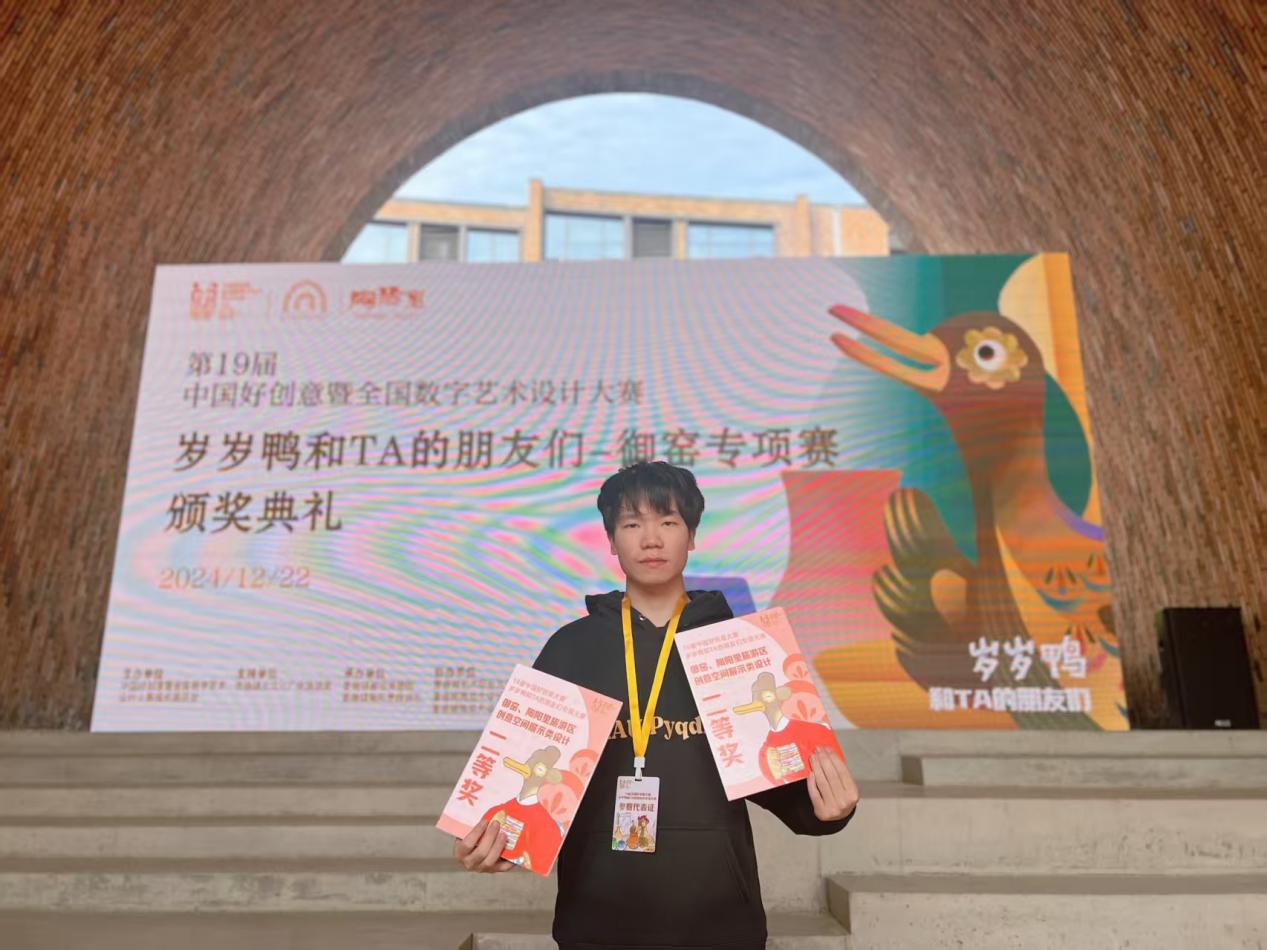 他的学习从不局限于课堂。为深入理解专业知识,他常在工作室钻研至深夜,从设计理论到软件实操,从创意构思到技术实现,每一个环节都精益求精。此外,他积极参与各类专业竞赛,凭借扎实的综合能力屡获佳绩。在他看来,深厚的专业功底是设计创作的基础,这份功底来自日复一日地积累与沉淀。